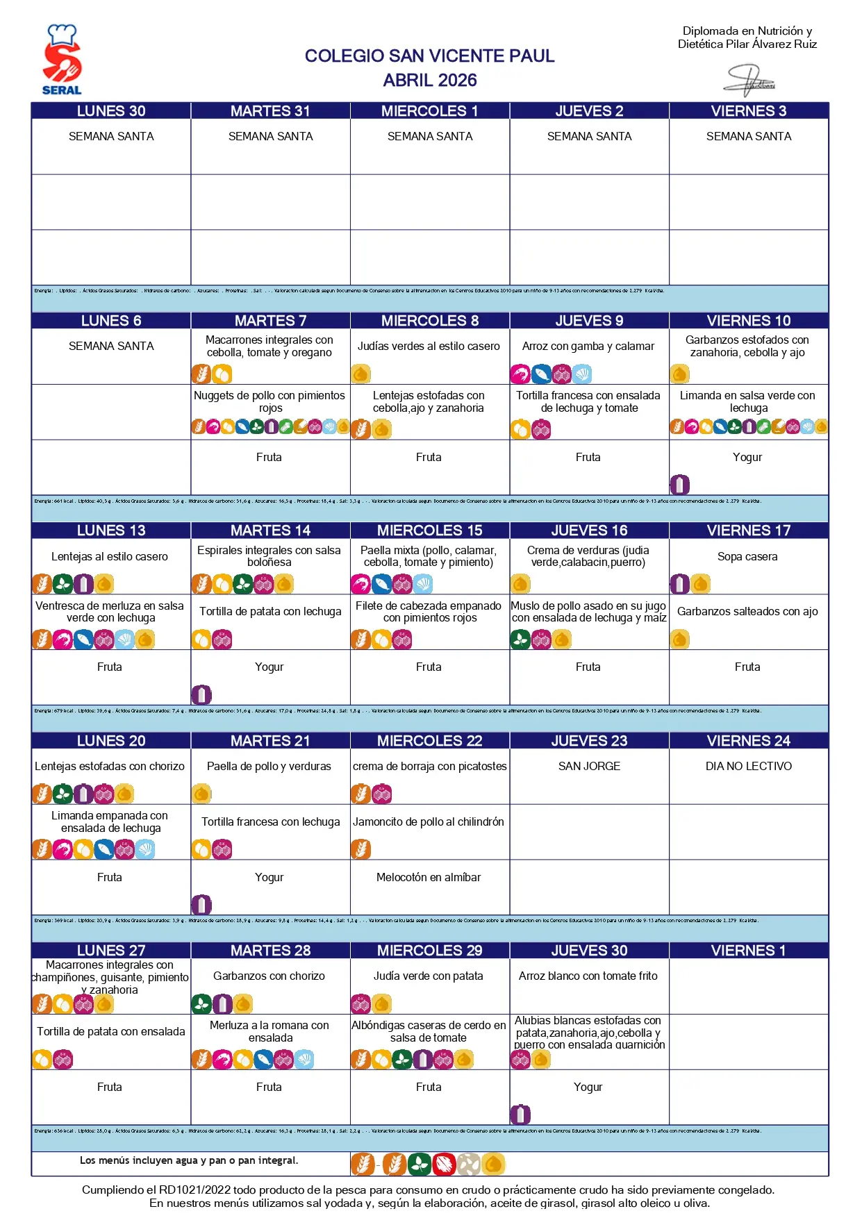 The menus are prepared by a team of nutritionists from the company. They consist of complete and balanced meals, complemented by a style of healthy and traditional cooking, which is carried out every day in the school's own kitchen.